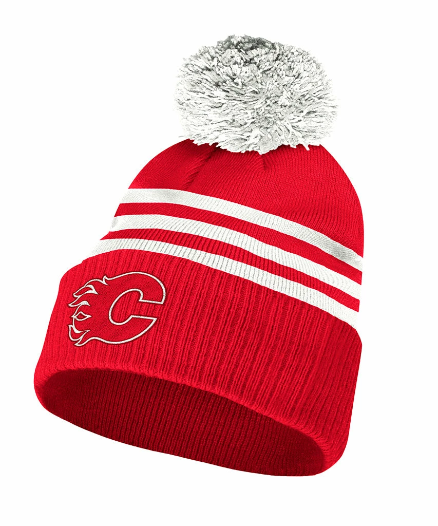Show your Calgary Flames pride while staying warm and cozy with the 3-Striped Cuffed Pom Toque from adidas. Featuring the Calgary Flames logo on the front with a pom on top.
