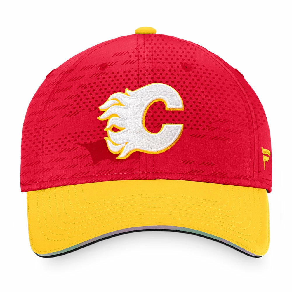 Wear what the pros wear with this Official Locker Room hat from Fanatics featuring the Calgary Flames logo and wordmark on the front with an adjustable back.