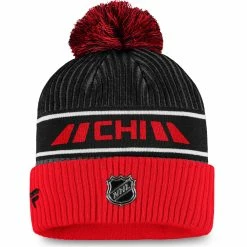 CHICAGO BLACKHAWKS FANATICS MEN’S BLACK ICE CUFF BEANIE TOQUE
