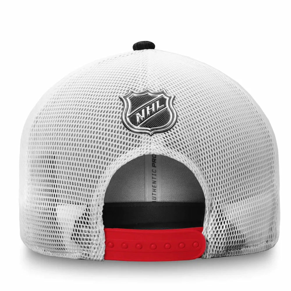 Wear what the pros wear with this Official Locker Room Structured hat from Fanatics featuring the Chicago Blackhawks logo on the front with a mesh back and adjustable snapback strap.