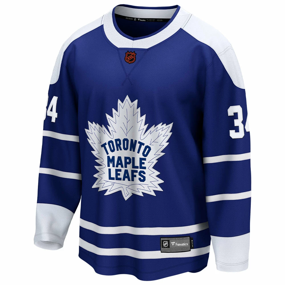 This Auston Matthews Toronto Maple Leafs Special Edition 2.0 Breakaway Player Jersey is a spirited piece to sport on game day. Fanatics Branded fabric technology keeps you comfortable throughout the game with its tailored fit, breathable fabric and moisture control. Plus, striking Toronto Maple Leafs graphics with complementing team details match those worn by players on the ice so you can feel like you’re part of the squad.