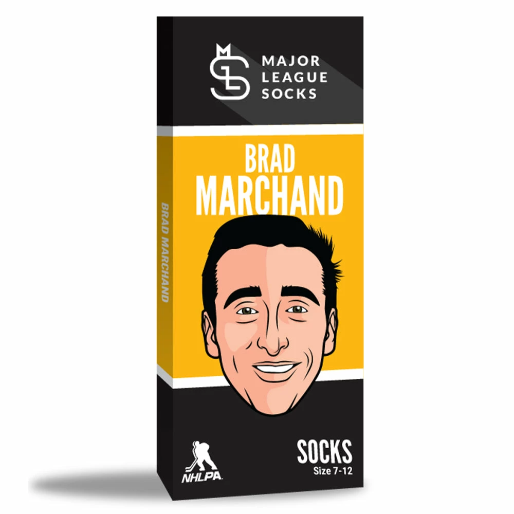 Show your Boston Bruins pride in style by rocking these Hall Of Fame Socks featuring Brad Marchand of the Boston Bruins on them!
