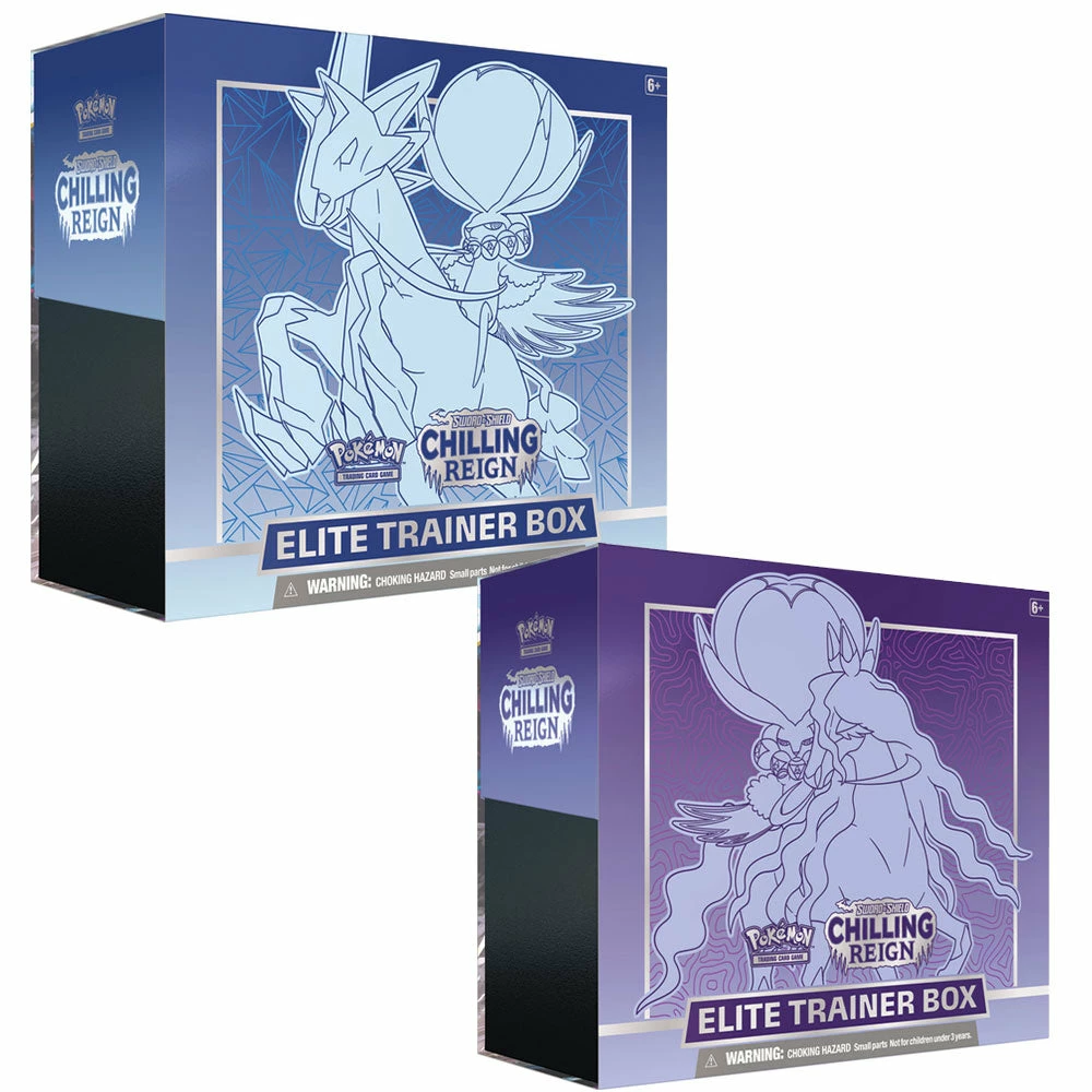 Seize the advantage with Pokémon of the frozen lands, with the powerful Ice Rider Calyrex VMAX and Shadow Rider Calyrex VMAX—plus the Galarian forms of Articuno, Zapdos, and Moltres! Phantom hauntings, howling blizzards, and wild battles—expand the realms of your Pokémon strategy with new powers and new possibilities. Press on despite ghostly opposition, and claim total victory in the land of spectral snow with the Pokémon TCG: Sword & Shield—Chilling Reign expansion!