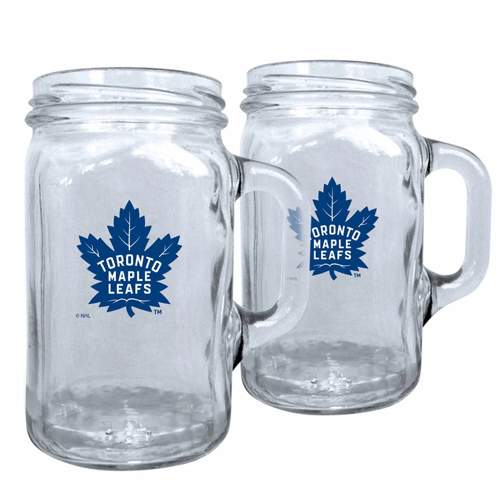 This mason mug set includes two mugs with the Toronto Maple Leafs logo. They are the perfect accessory for the Toronto Maple Leafs Fan in your family!