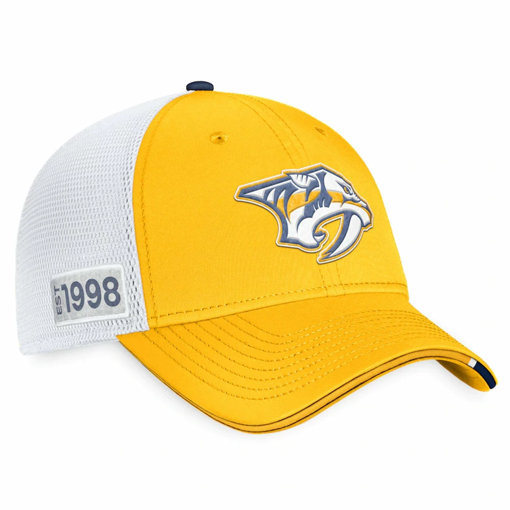 Get excited for the upcoming season as the Nashville Predators add fresh, new talent to their lineup by grabbing this FANATICS AUTHENTIC PRO 2022 NHL DRAFT STRUCTURED TRUCKER HAT. Its high crown adds style while its mesh panels add ventilation, keeping you comfortable all day long. This Fanatics Branded gear sports the same design and Nashville Predators graphics that the players will be wearing during the draft, ensuring that you always look and feel like the real deal.