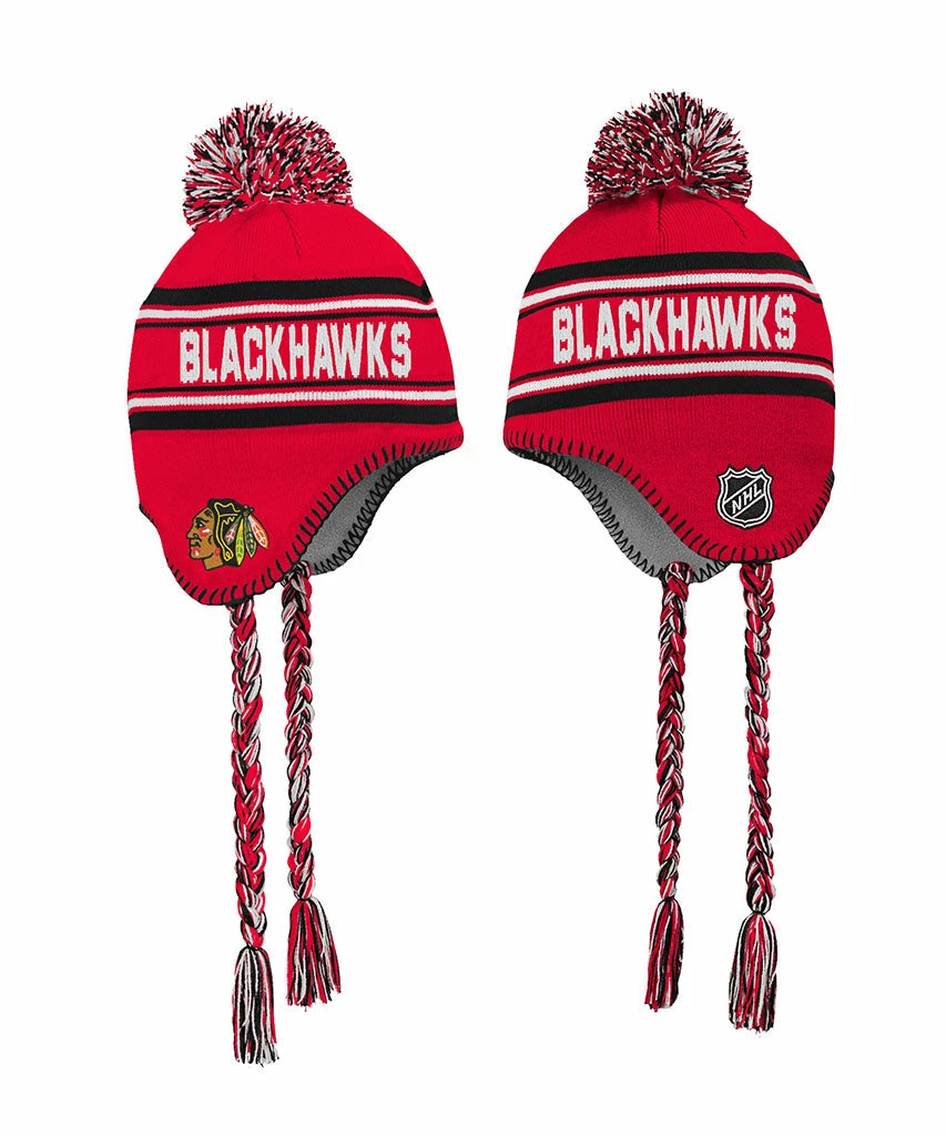 Outer Stuff CHICAGO BLACKHAWKS KID’S WORDMARK TASSEL KNIT TOQUE