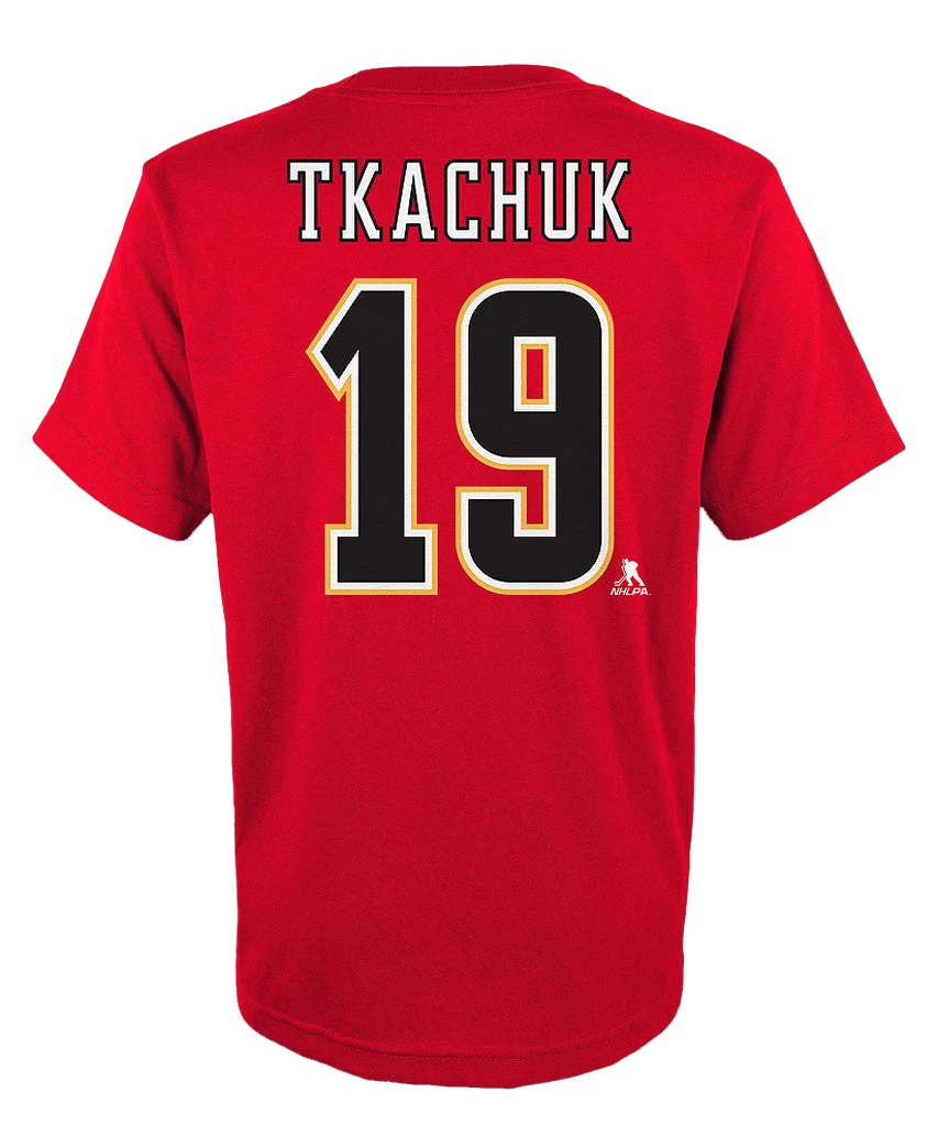 - A tee made in the style of the official home sweater of the Calgary Flames.