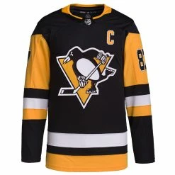 SIDNEY CROSBY PITTSBURGH PENGUINS ADIDAS ADIZERO PRIMEGREEN AUTHENTIC BLACK HOME JERSEY