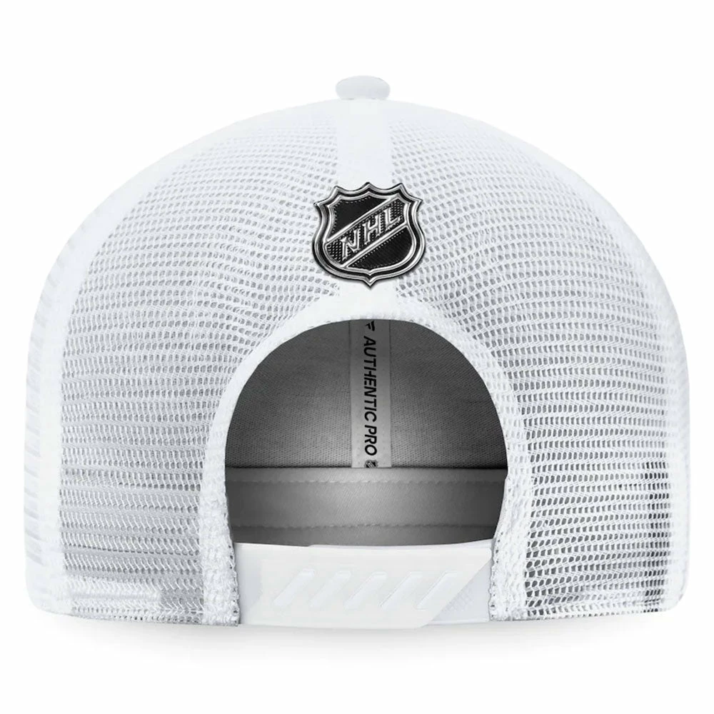 Get excited for the upcoming season as the Toronto Maple Leafs add fresh, new talent to their lineup by grabbing this FANATICS AUTHENTIC PRO 2022 NHL DRAFT STRUCTURED TRUCKER HAT. Its high crown adds style while its mesh panels add ventilation, keeping you comfortable all day long. This Fanatics Branded gear sports the same design and Toronto Maple Leafs graphics that the players will be wearing during the draft, ensuring that you always look and feel like the real deal.