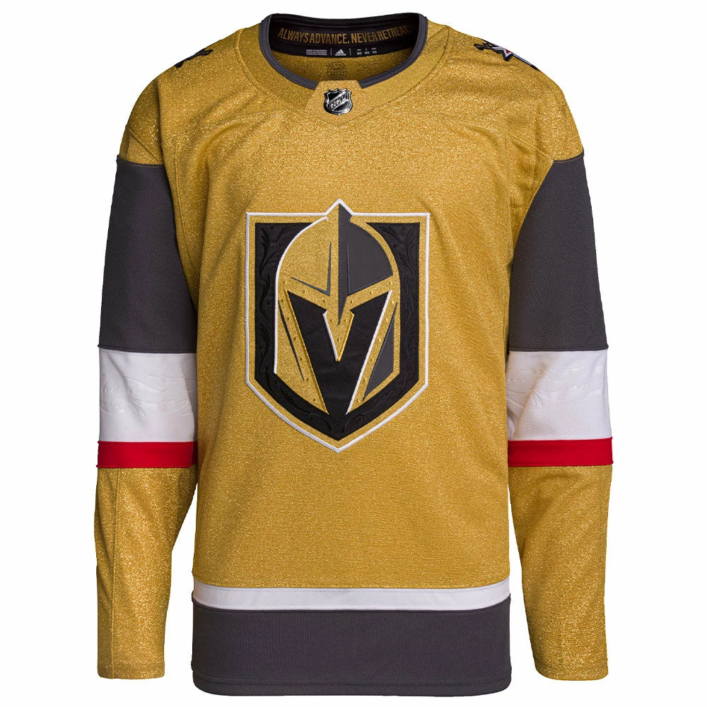 VEGAS GOLDEN KNIGHTS ADIDAS ADIZERO PRIMEGREEN AUTHENTIC GOLD THIRD JERSEY