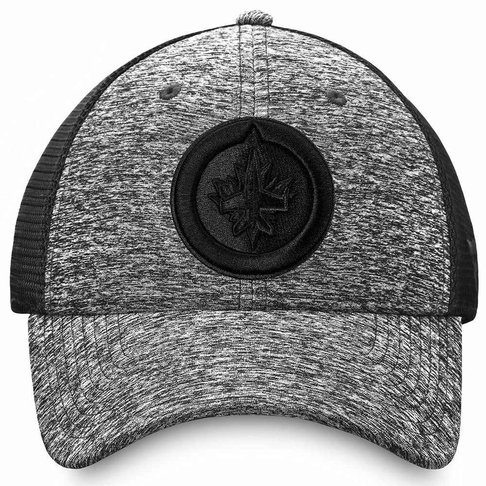 Show your Winnipeg Jets team pride while rocking this stretch mesh hat featuring a unique Black Ice design with the hat and logo being black and grey. Embossed NHL logo shield on the back.