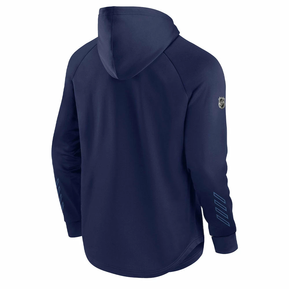 Show your Winnipeg Jets pride with this Authentic Pro Locker Room Pull Over Hoodie From Fanatics. This features the Winnipeg Jets logo and wordmark on the front with a pull over design with a hood. The NHL shield logo appears on the arm all in a fit designed for comfort. Wear what the pro’s wear in the locker room!